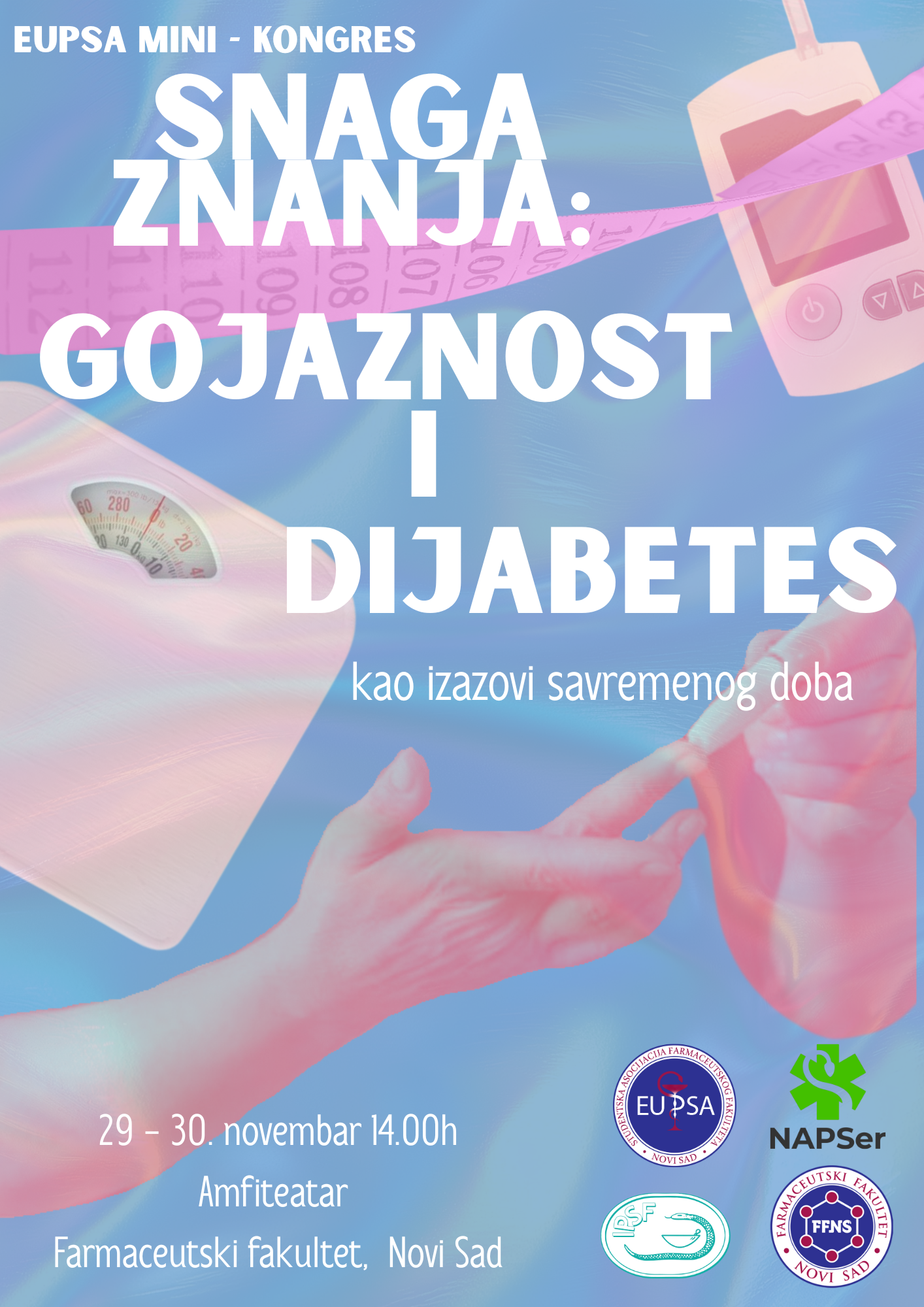 Sa velikim zadovoljstvom vas pozivam da nam se pridružite na EUPSA mini-kongresu pod nazivom „Snaga znanja: gojaznost i dijabetes kao izazovi savremenog doba", koji se održava od 29. do 30. novembra 2025. godine. Prvi dan mini-kongresa biće posvećen predavanjima sa početkom od 14.00h u amfiteatru našeg fakulteta, dok će se drugog dana održati dve takmičarske radionice.